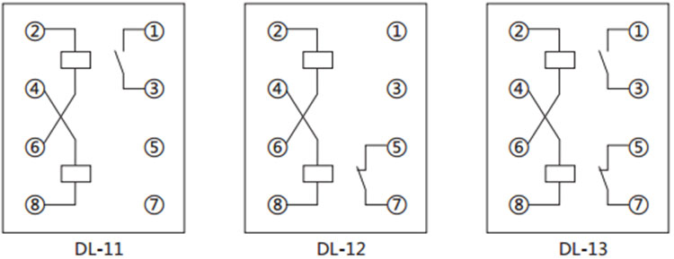 DL-11電流繼電器內(nèi)部接線及外引接線圖(背視圖)