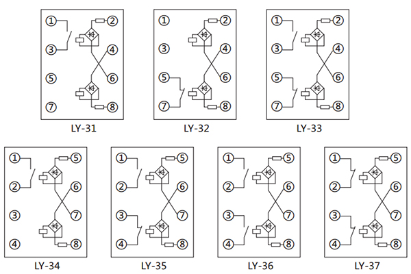 LY-33電壓繼電器內(nèi)部接線及外引接線圖(正視圖):