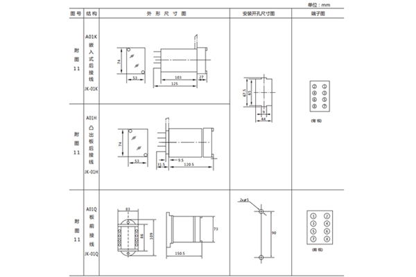DX-31B信號繼電器外形結(jié)構(gòu)及安裝開孔尺寸