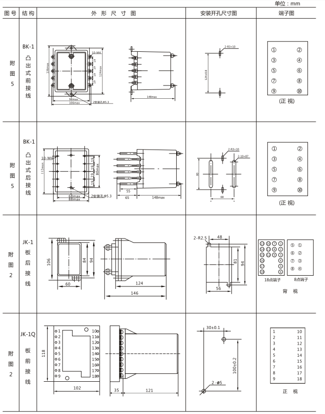 JZ-□-1□內(nèi)部接線圖及外引接線圖(正視圖)